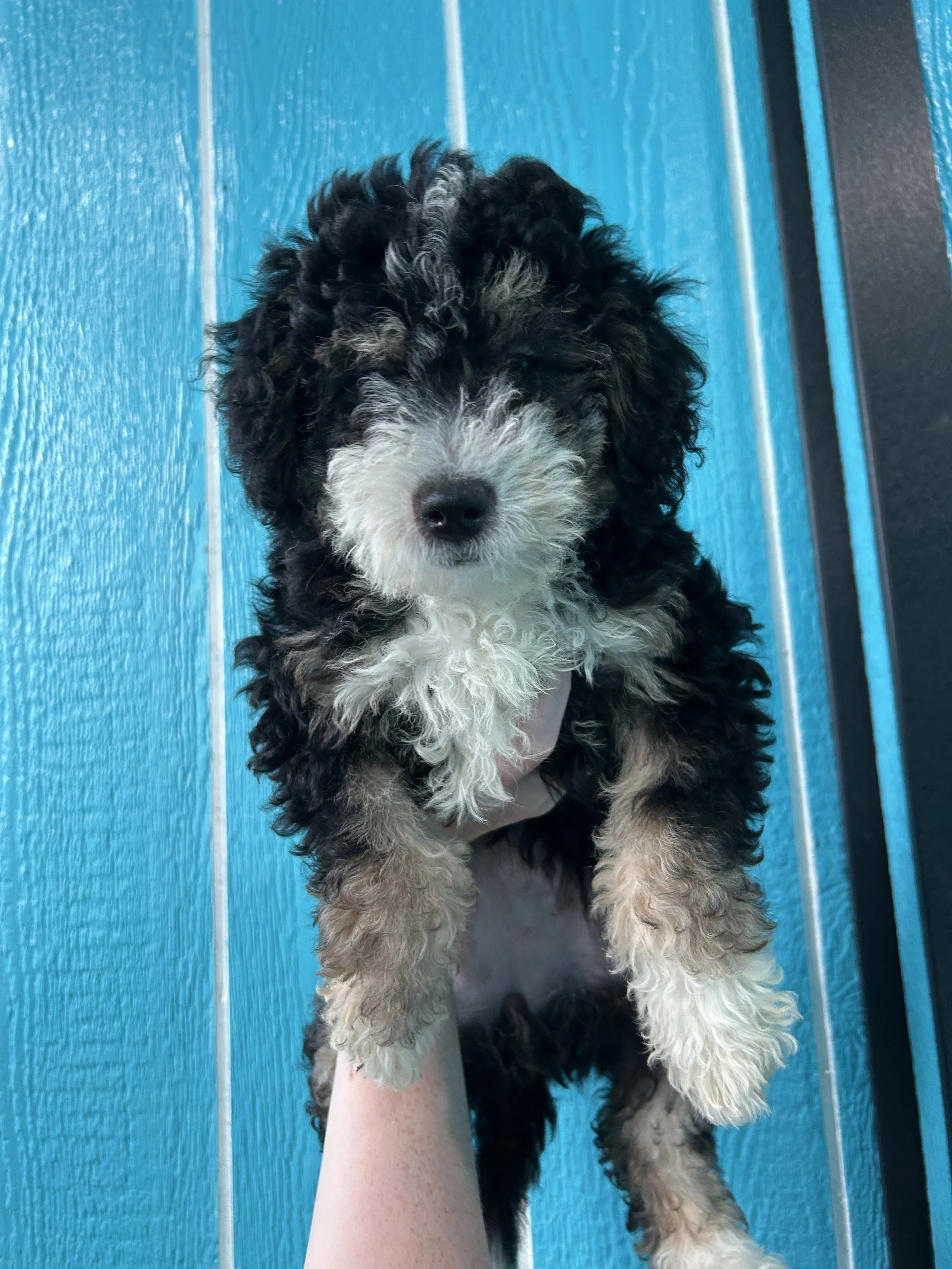 Quana is a female Bernedoodle, born 8/1/21, weighing 26lbs.